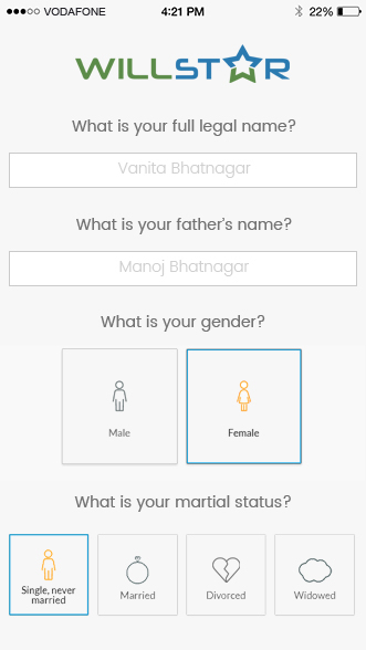 Now create your legal Will draft online at the ease and comfort of your home. WillStar helps you write your legal Will using simple and intuitive interface that makes it fun to male your Will. Available currently in English, Hindi and Tamil. You can also seek help to get your Will reviewed and registered through an expert lawyer.